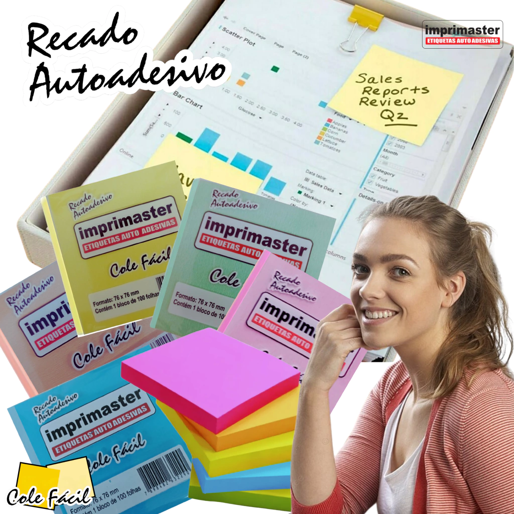 Bloco Adesivo Cole Fácil Tipo Post It 76x76 Folhas Colorido